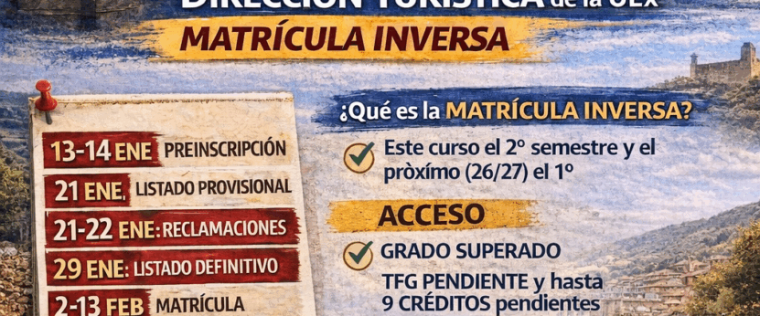 Abre el plazo de PREINSCRIPCIÓN en modalidad de MATRÍCULA INVERSA del Máster Universitario en Dirección Turística (MUDT – UEx)